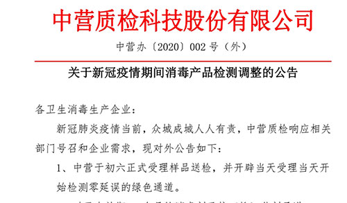 關(guān)于新冠疫情期間消毒產(chǎn)品檢測調(diào)整的公告
